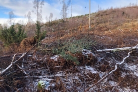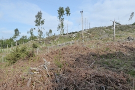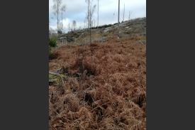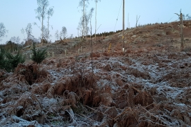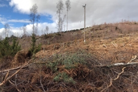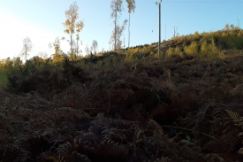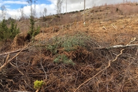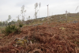 1000s of years ago standing here you would have a kilometre of ice above your head. Imagine that! A glacier marching out from the snowfields of the cairngorms scraped over the land forming the whale-back shaped rocks you see in front of you. Some time in the last 100 years a plantation of conifer trees was planted across the area. In 2014 the trees were felled to reveal the rocks again. The photographs you take at this photo post will record the regeneration of vegetation and the remnants of the conifer stumps and trunks as they decay.