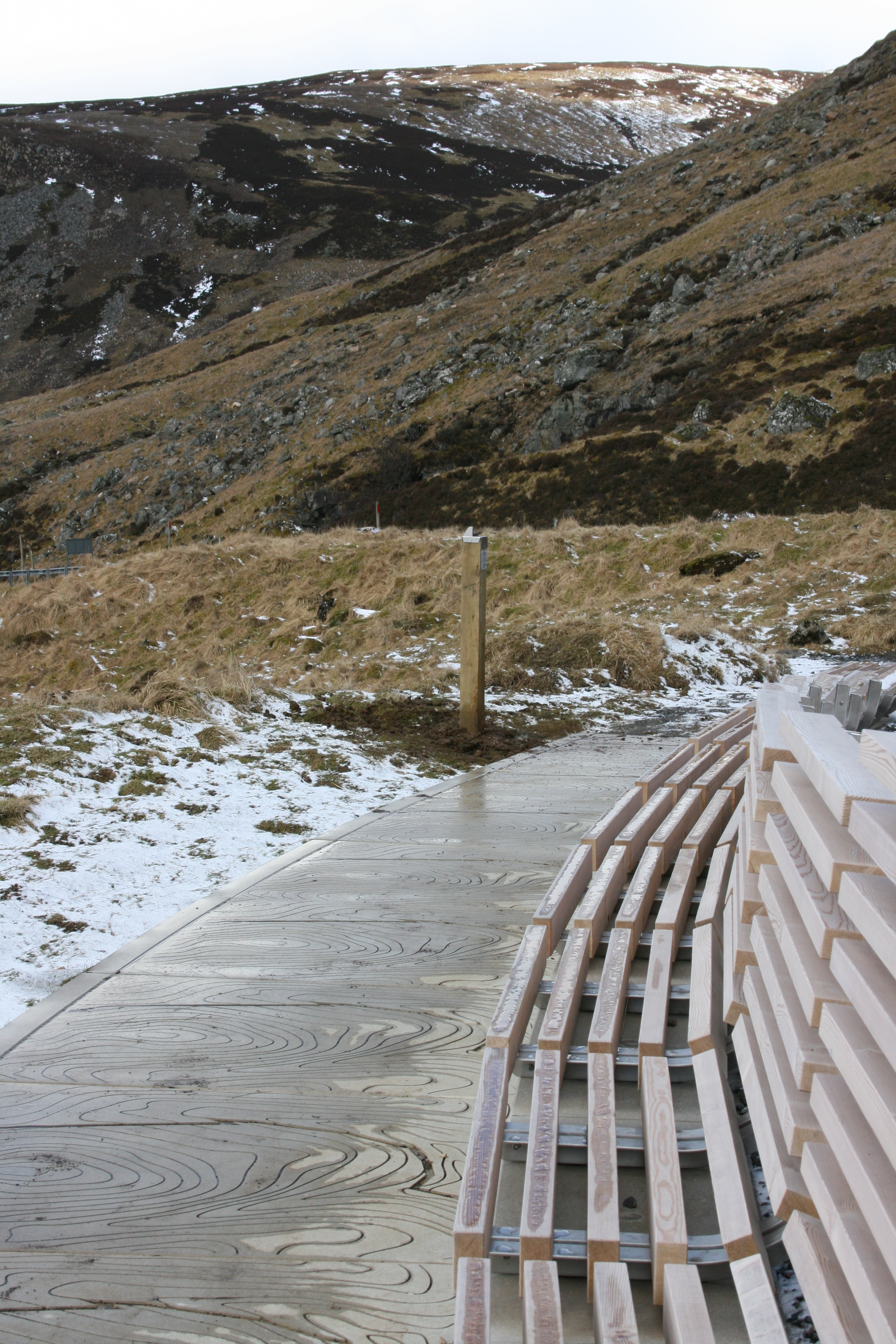 This lay-by is part of the “Snow Road Scenic Route” and behind a low mound you will find a wonderful long seat from which to take in the atmosphere and the view.
