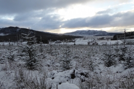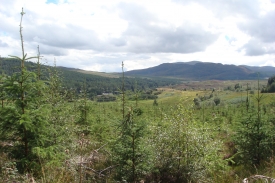 We know little about the Picts, but we do know that in the Black Wood, west of the photo post they built the stunning Pictish Fort of Dun da Lamh. From this post you are looking across Strathmashie. At this post you will be recording broad scale changes in the forest and also regenerating broadleaves along the river corridor. You will see Strathmashie house a 19th century shooting lodge and the cottages alongside the A82 which were built by the Forestry Commission in the 1950s to house forest workers. Strathmashie Wood is now a community forest run in partnership between Forestry Commission Scotland (FCS) and the Laggan Forest Trust. The forest around you hides a wealth of interest. As well as the pictish fort hidden within the woods in front of you are the remains of Druim an Aird township.