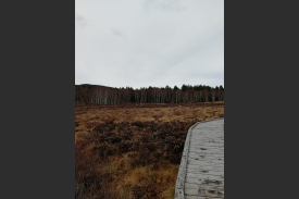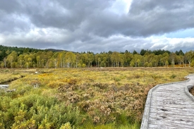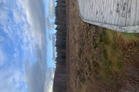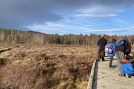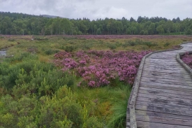 Standing on the wooden platform at Parkin’s Moss provides you with an intimate view of this raised bog whilst keeping your feet dry! The view leads to the woodland edge and towards Culblean in the distance. Photographs taken at this post will record seasonal changes in the vegetation of the bog and adjacent woodland, as well as changing water levels, tree removal in some areas and tree growth in others.