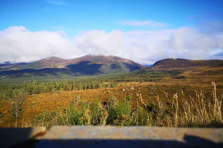 This beautiful view looks towards the Pass of Ryvoan and Meall a’ Bhuachaille, the largest hill on the left of the pass. Photographs taken here will record native forest regeneration, including changes to the natural tree line as it creeps up the hillsides.